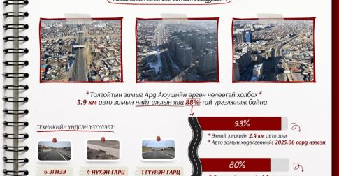 Толгойтын замыг Ард Аюушийн өргөн чөлөөтэй холбох 3.9 км авто замын нийт ажил 88...